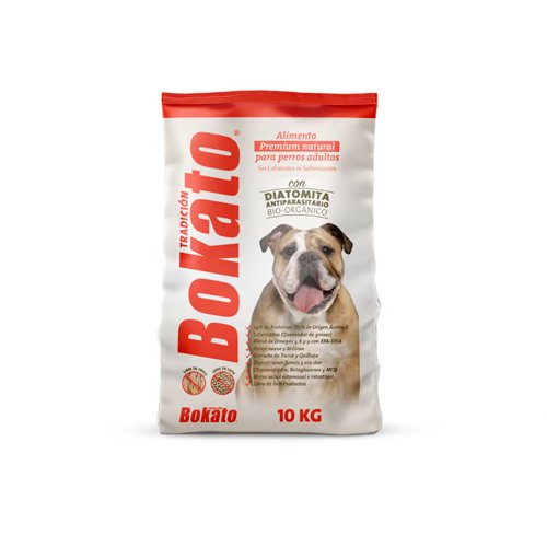 Es un excelente alimento para perros adultos, ya que contiene 24% de proteína y 10% de extracto etéreo, Omega 3, 6 y 9, Betaglucanos y Yucca Schidigera, entre otras cosas. Contiene 85% de Proteína Animal. Para mordida grande.