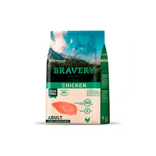 Chicken Mini Adult de BRAVERY® Es un alimento con pollo para perros adultos de razas pequeñas. Libre de grano y cereales, además, de ser monoproteíco, con pollo siempre como primer ingrediente y enriquecido con antioxidantes hipoalergénicos 100% naturales. Es una receta con un elevado contenido de proteínas, alta digestibilidad y palatabilidad, ideal para razas de perros adultos pequeños.