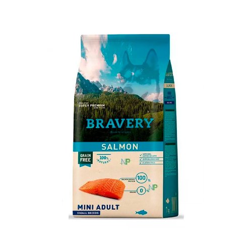 Bravery Salmon Mini Adult Small Breeds es un alimento para perros adultos de razas pequeñas y/o minatura. Libres de grano y cereales, los alimentos Bravery son mono proteicos, con carne siempre como primer ingrediente y enriquecidos con antioxidantes, hipo alergénicos y 100% naturales. Receta con salmón, de alto valor biológico cuyo aceite es rico en ácidos grasos ω-3, especialmente EPA y DHA.