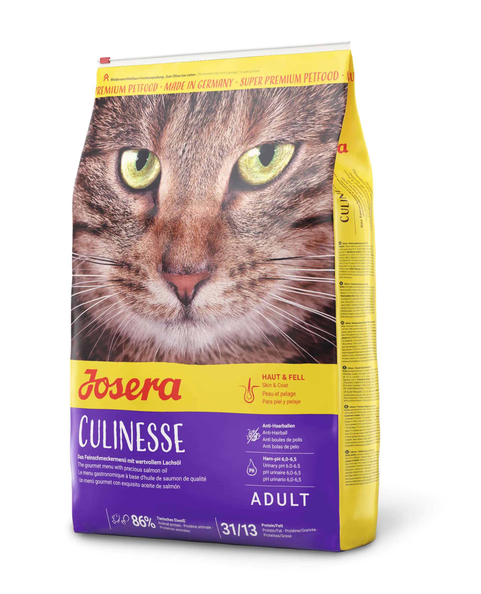 Un pelo brillante y sedoso y una piel sana son signos de una alimentación óptima de tu gato. De esto se ocupan los valiosos ácidos grasos, las vitaminas, el cinc y el cobre en una forma fácilmente absorbible y unida orgánicamente.