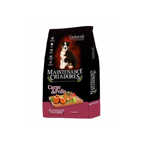 Contiene todos los nutrientes que su perro necesita para mantenerse saludable y activo. La combinación de carne y pollo, logra de Maintenance Criadores un alimento con proteínas de alto valor biológico, fibras, minerales, vitaminas y ácidos grasos escenciales logrando protección de la salud del pelo y la piel, fortalecimiento de huesos y articulaciones e incremento de las defensas.